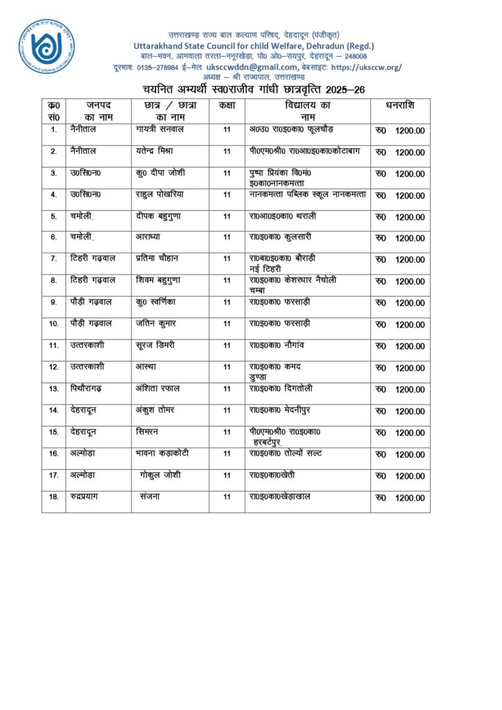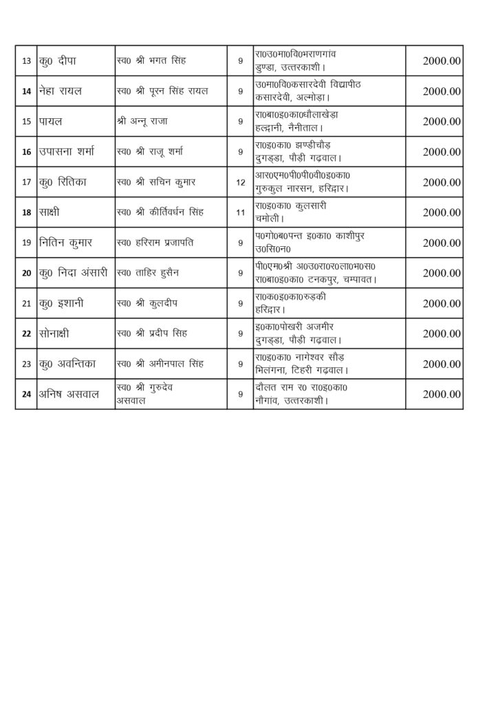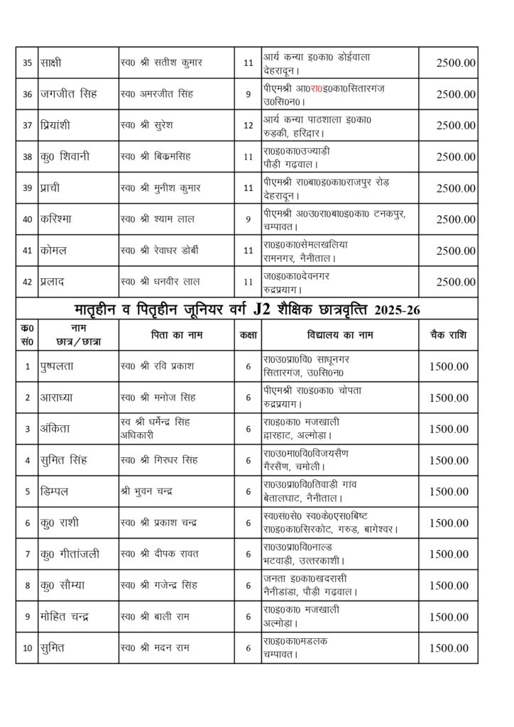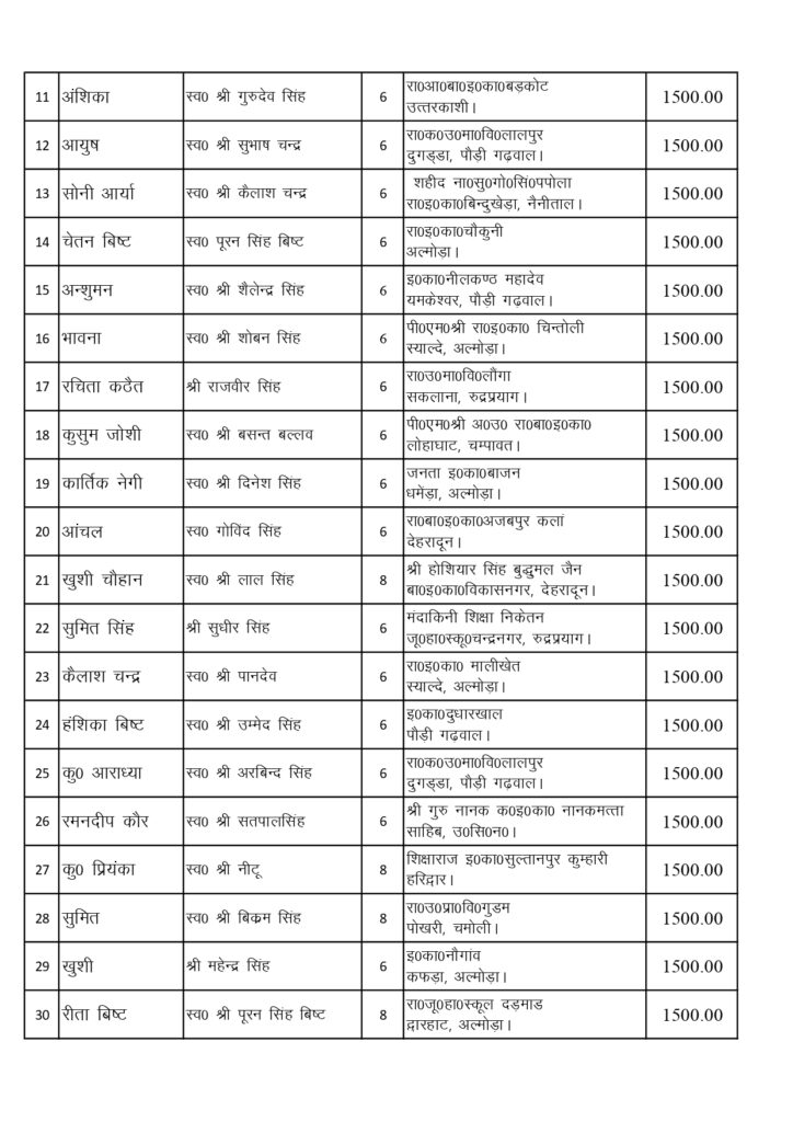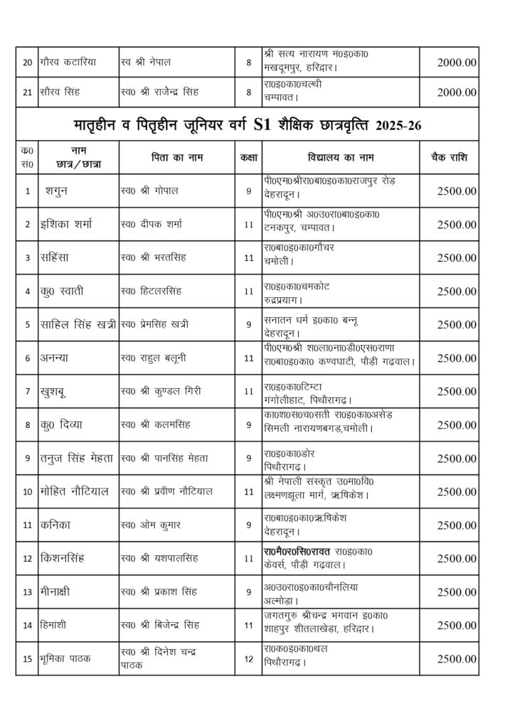 This year also, Uttarakhand State Child Welfare Council, Dehradun is providing educational assistance to motherless and fatherless students studying in government and aided non-government schools, who are not getting educational assistance from other sources.
